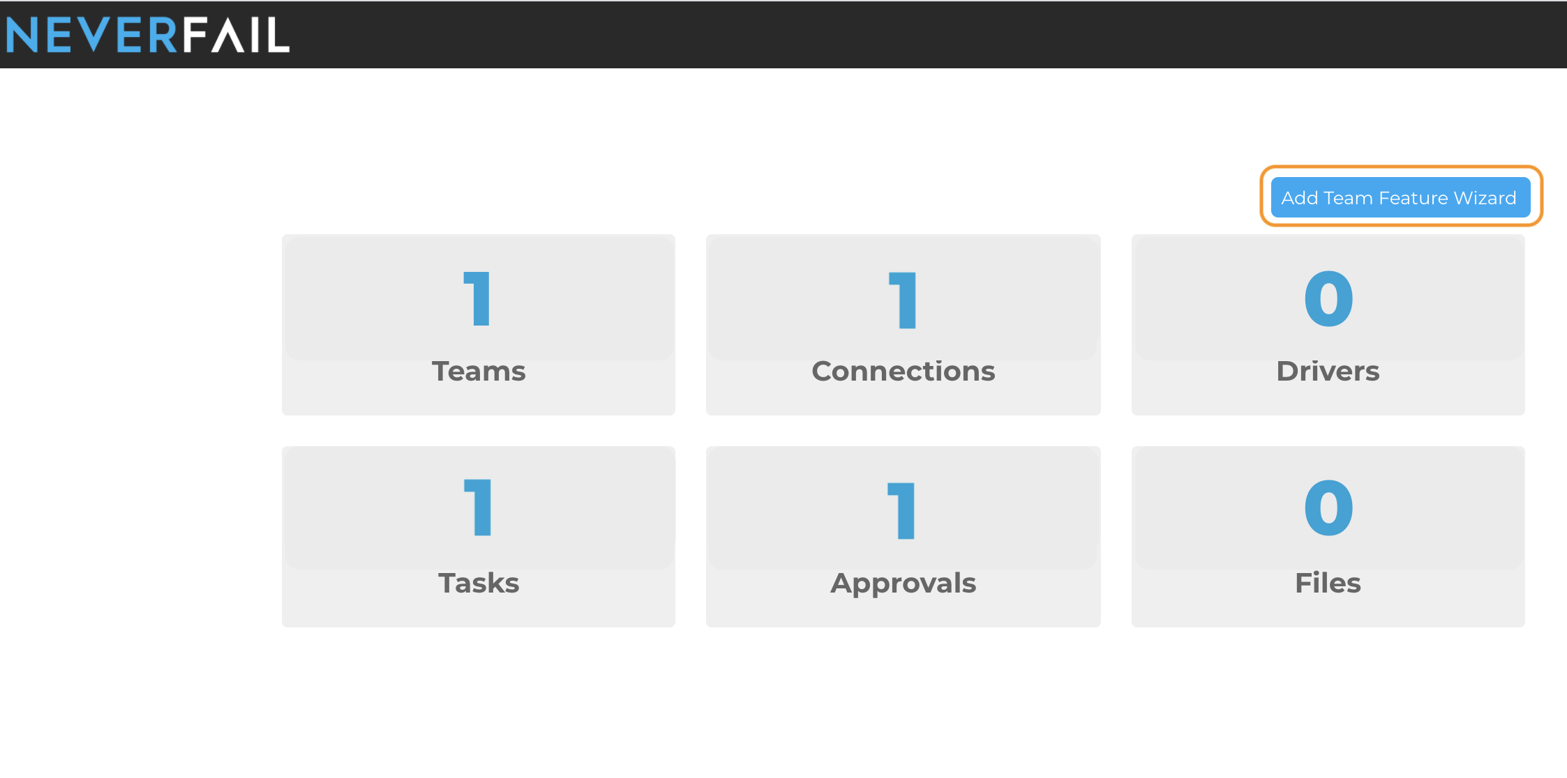 From the WIQ home dashboard page (https://prod.neverfail.com/), click on the Add Team Feature Wizard to get started.