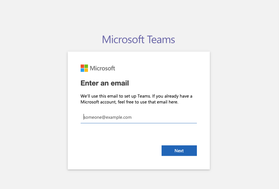 Enter an email. click Next