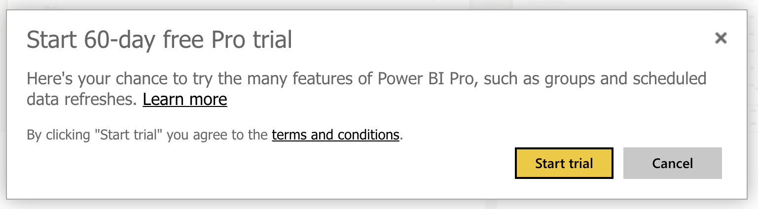 Power BI Pro is yours for 60 days - Click Got it.