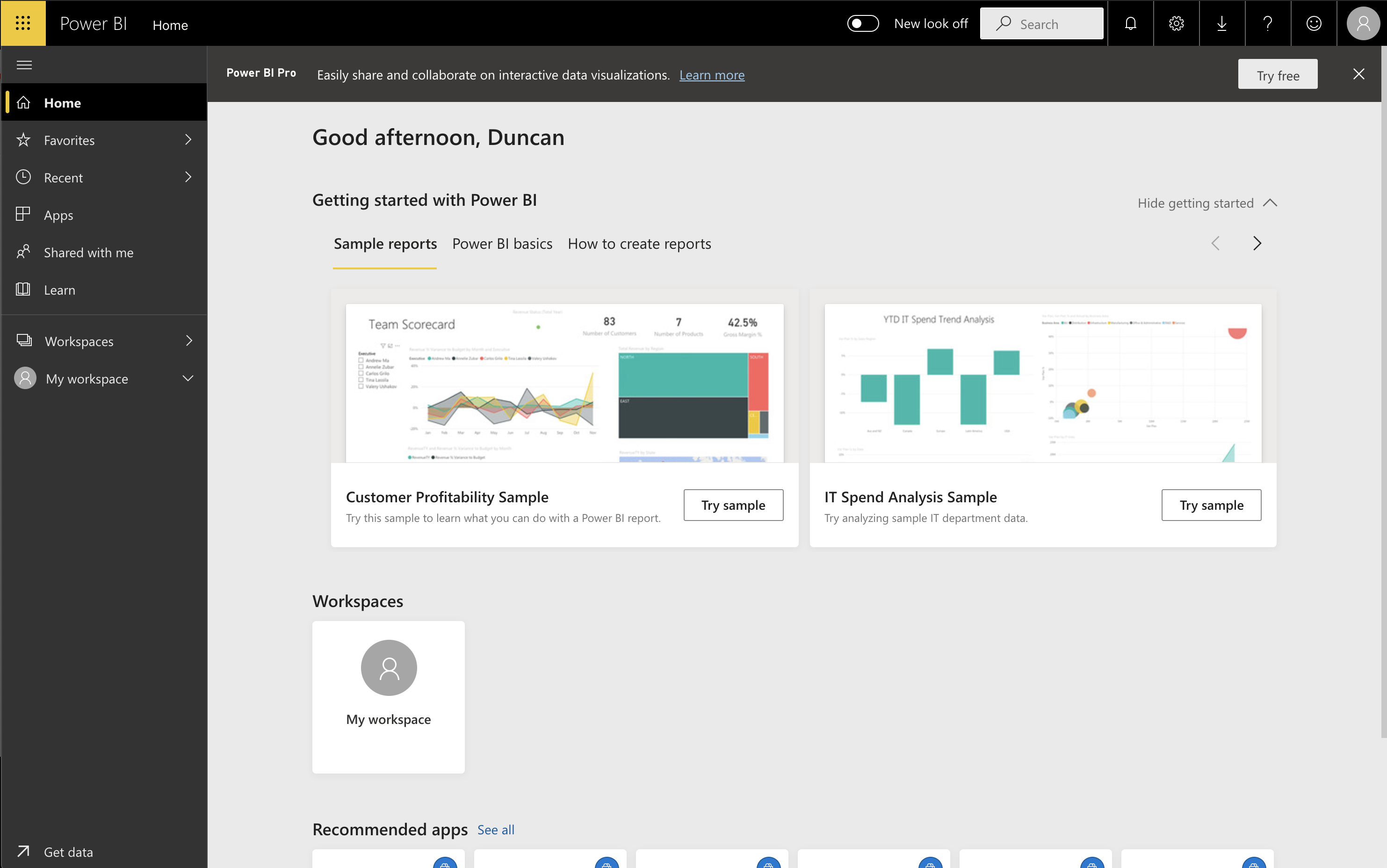 Enter PowerBI home.