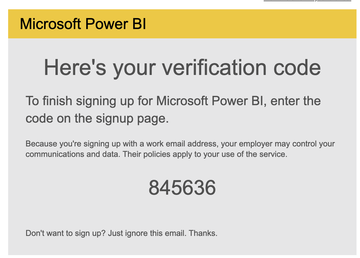 Return to PowerBI and create your account.